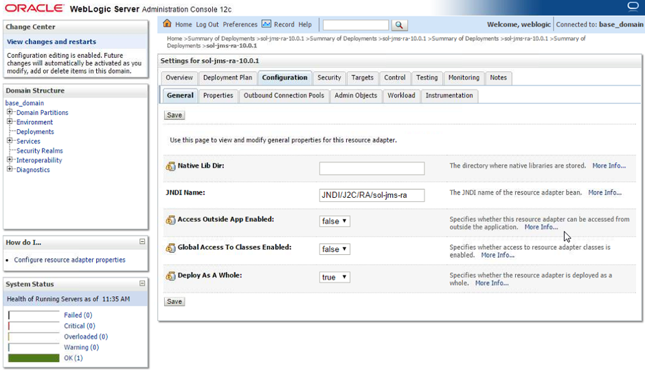 Solace provides a JCA compliant resource adapter for integrating Java enterprise applications with the Solace JMS event broker. There are two options for integrating Solace with WebLogic for use by Java enterprise applications including embedded and stand-alone deployment. This section will cover instructions on configuring the Resource Adapter Archive (RAR) file for stand-alone deployment, and configuring Solace as a Foreign JMS Provider